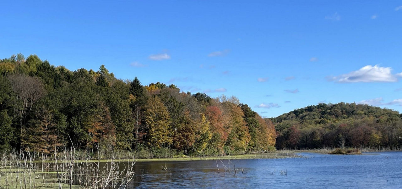 Forestry staff in Clear Creek State Forest (serving Beaver, Butler, Armstrong, Mercer, Clarion, Jefferson, and Venango counties) the district will reach peak fall foliage this week! Vibrant red maples and golden hickories will continue to dot the landscape through the upcoming week. Bright yellow walnut trees are bringing welcomed color to lowland areas. Some oaks are transitioning to rusty brown, though most are still providing a green backdrop to pops of color from other species. It may take another week or two for oak-dominated forests to hit peak color. This extended season with oak color is what makes autumn in Pennsylvania so special! Enjoy a trip to Lake Wilhelm in Maurice K. Goddard State Park this weekend for a timeless view of autumn leaves reflecting off the water!