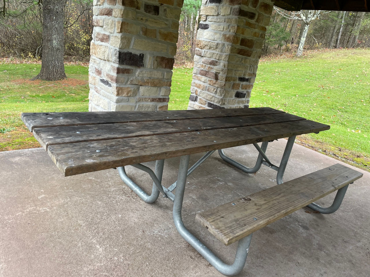 Deer Lodge pavilion can accommodate up to 80 people with 10 picnic tables. Domestic pets are allowed.