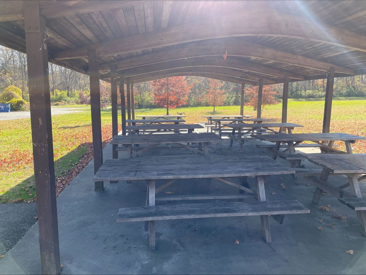 Pavilion 11A can accommodate up to 80 people with 10 picnic tables. Domestic pets are available.