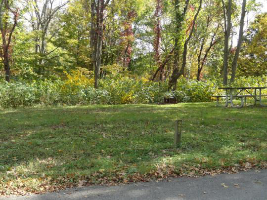 Site 21 in the Polly Hill Campground offers a full hook-up with 50-amp service and a gravel back-in driveway. The driveway is 40 feet long, accommodating vehicles up to 50 feet in length.