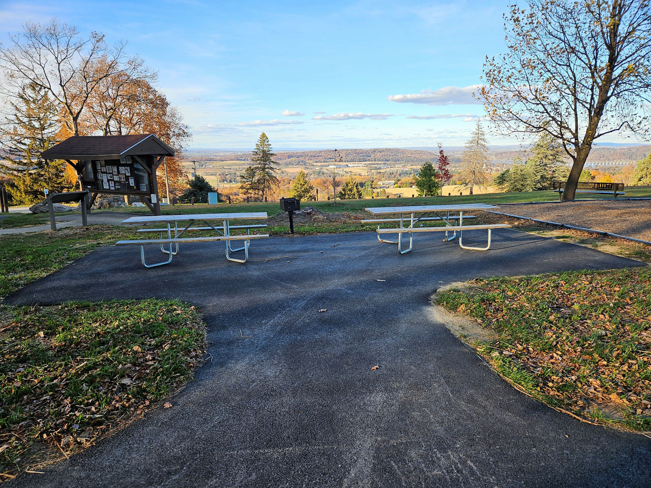 Accessible picnic tables are located in the Hilltop Area near the pavilion.