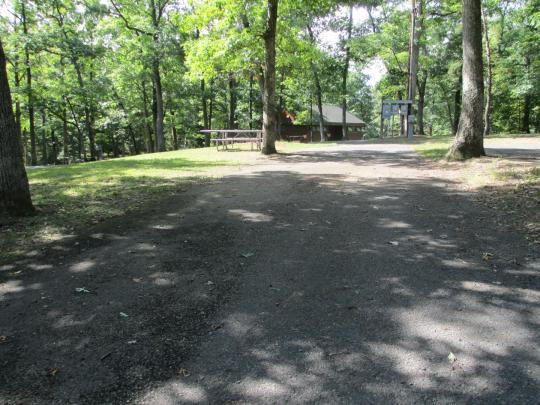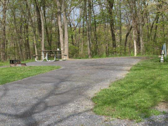 Site 242 in Loop F offers modern 50-amp electric service with a paved, back-in driveway and a maximum vehicle length of 40 feet.