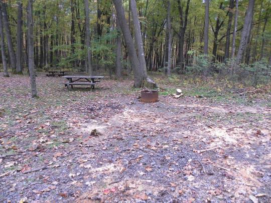 Rustic Campground, Site 7 is a rustic non-electric campsite with a gravel back-in driveway that’s 42 feet long and a maximum vehicle length of 27 feet. Domestic pets are allowed.