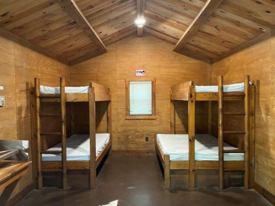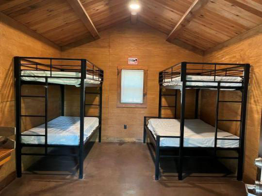 Camping Cottage 4 can accommodate up to 5 people. Guests are reminded to bring their own bed linens, towels, dishes, pots and pans.
