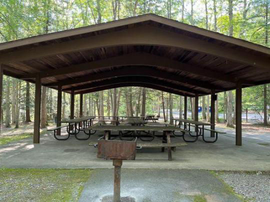 Pavilion 2 can accommodate up to 40 people with 6 picnic tables. Domestic pets are allowed.
