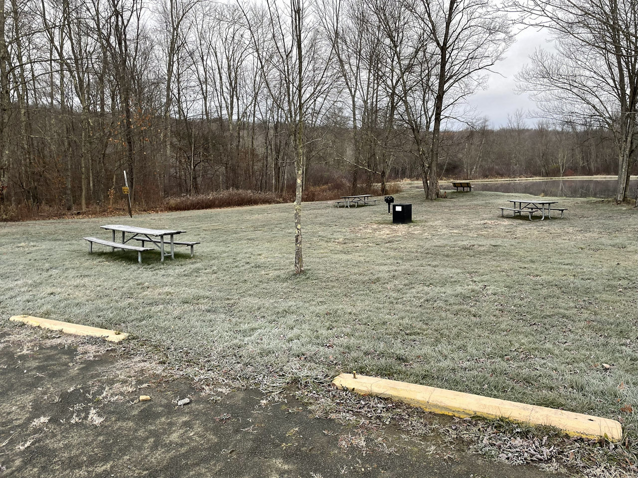 The Tannery Tract is a flat area adjacent to the pond that has accessible picnic tables.