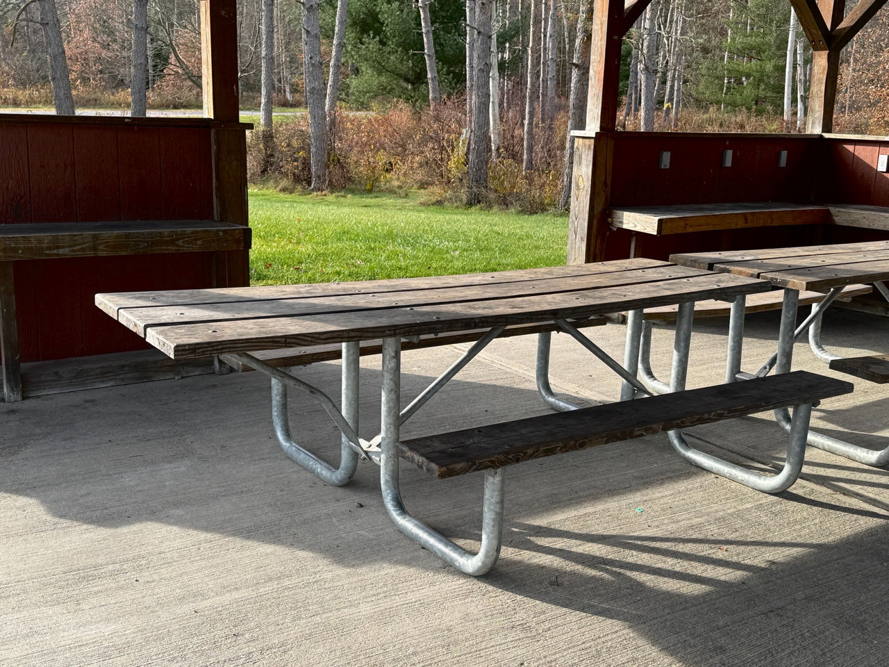 The Woodland pavilion can accommodate up to 75 people at 12 picnic tables. Domestic pets are allowed.