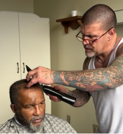 A group of barbers from Iron’s Edge Barber Co. in Phoenixville, visited Southeastern Veterans’ Center to provide engaging conversation and free cuts for our veterans. The event, which was sponsored by East Vincent Township, left residents looking sharp! |