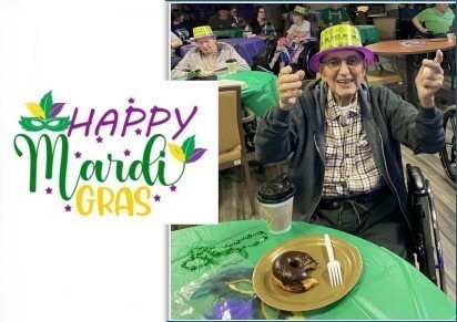 Residents at the Hollidaysburg Veterans’ Home (HVH) celebrated Mardi Gras with parties in all three of the facility’s buildings: Eisenhower Hall; Arnold Hall; MacArthur Hall. The galas included live music, karaoke, donut treats and fun props.