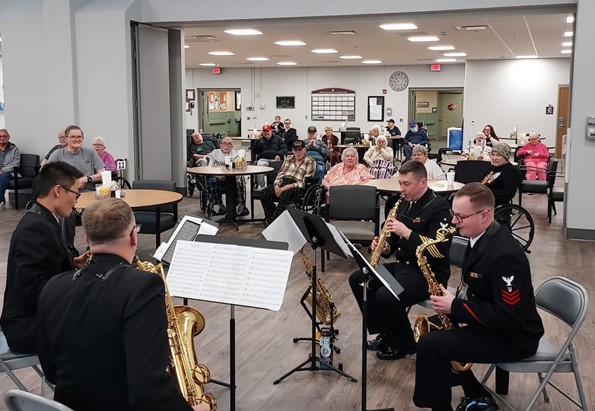 The United States Navy Concert Band on their national tour through Erie, PA stopped by the Pennsylvania Soldiers’ and Sailors’ Home (PSSH) for an exclusive recital. On the eve of their sold-out performance at Erie’s Warner Theatre, the U.S. Navy Band sent a woodwind quintet and a saxophone quartet to PSSH for a select show. As part of its 2026 Northeast tour celebrating the 250th anniversary of the United States, the U.S. Navy Band concert is designed to connect each community with their Navy. The program featured a broad selection of musical works, from American classics to contemporary pieces. As the premier musical organization of the U.S. Navy, the United States Navy Band is honored to mark the 250th anniversary of the United States, celebrating this historic milestone throughout the year by bringing the Navy where ships can’t go, telling the Navy story, instilling pride and patriotism, as well as representing the professionalism of hundreds of thousands of sailors and Navy civilians serving around the world 24 hours a day, seven days a week. The U.S. Navy Band’s concert in Erie and at PSSH adds another chapter to our maritime history, which dates to 1813 when Commodore Oliver Hazard Perry and Daniel Dobbins built a nine-vessel fleet at the mouth of Cascade Creek to challenge British control of the Great Lakes. |