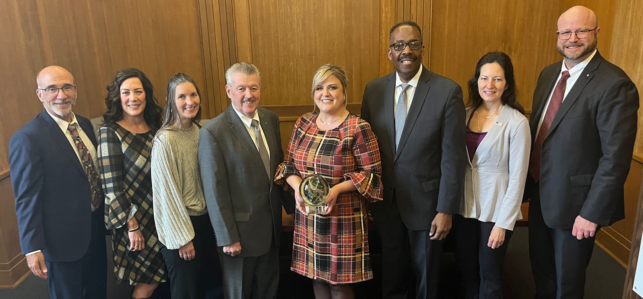 PHOTO CAPTION: Posing with the Pennsylvania DUI Association Mary Ann Bowman Prevention Award are, from left: Pennsylvania Liquor Control Board (PLCB) Executive Director Rodrigo Diaz, Responsible Alcohol Management Program (RAMP) Division Chief Lori Rizzo; Director of Regulatory Affairs Tisha Albert; PLCB Board Member Jim Brewster; Director of Alcohol Education Corinne Dinoski; PLCB Board Chairman Darrell Clarke; Education and Grants Management Chief Machel Drahnak; and PLCB Deputy Executive Director Doug Hitz.