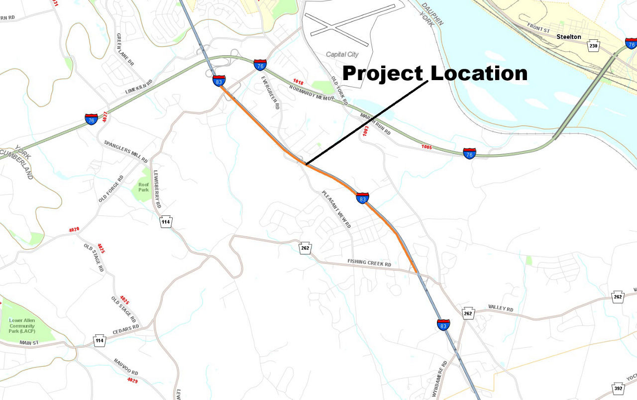 Harrisburg, PA – The Pennsylvania Department of Transportation (PennDOT) announced today that concrete patching is scheduled to resume Monday, April 27, on southbound Interstate 83 between Exit 39A (Route 114/Lewisberry Road) and Exit 36 (Route 262/Fishing Creek) in York County.