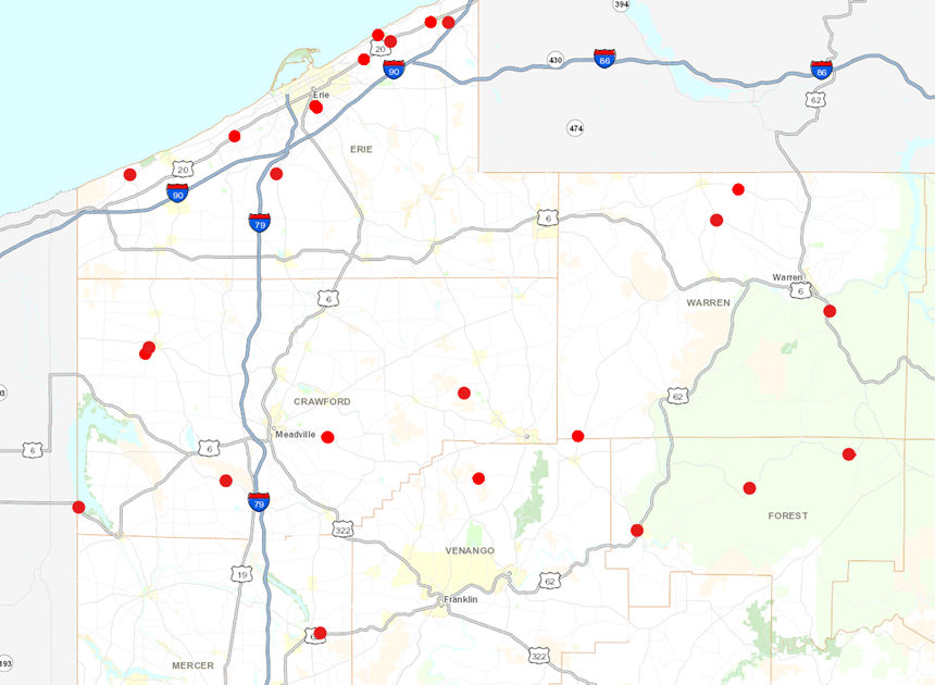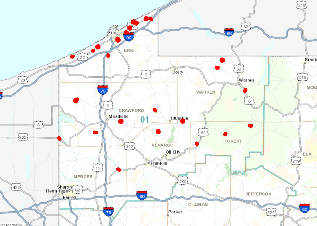 County: Crawford, Erie, Forest, Mercer, Venango, Warren
