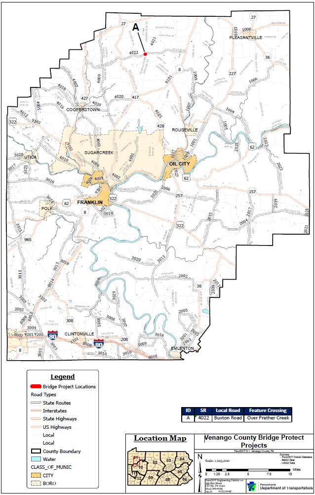 - Crawford County – Mystic Park Road over Oil Creek. There will be minor temporary impacts to the Oil Creek designated Water Trail. Impacts will be minimized by using an approved Aids to Navigation Plan.