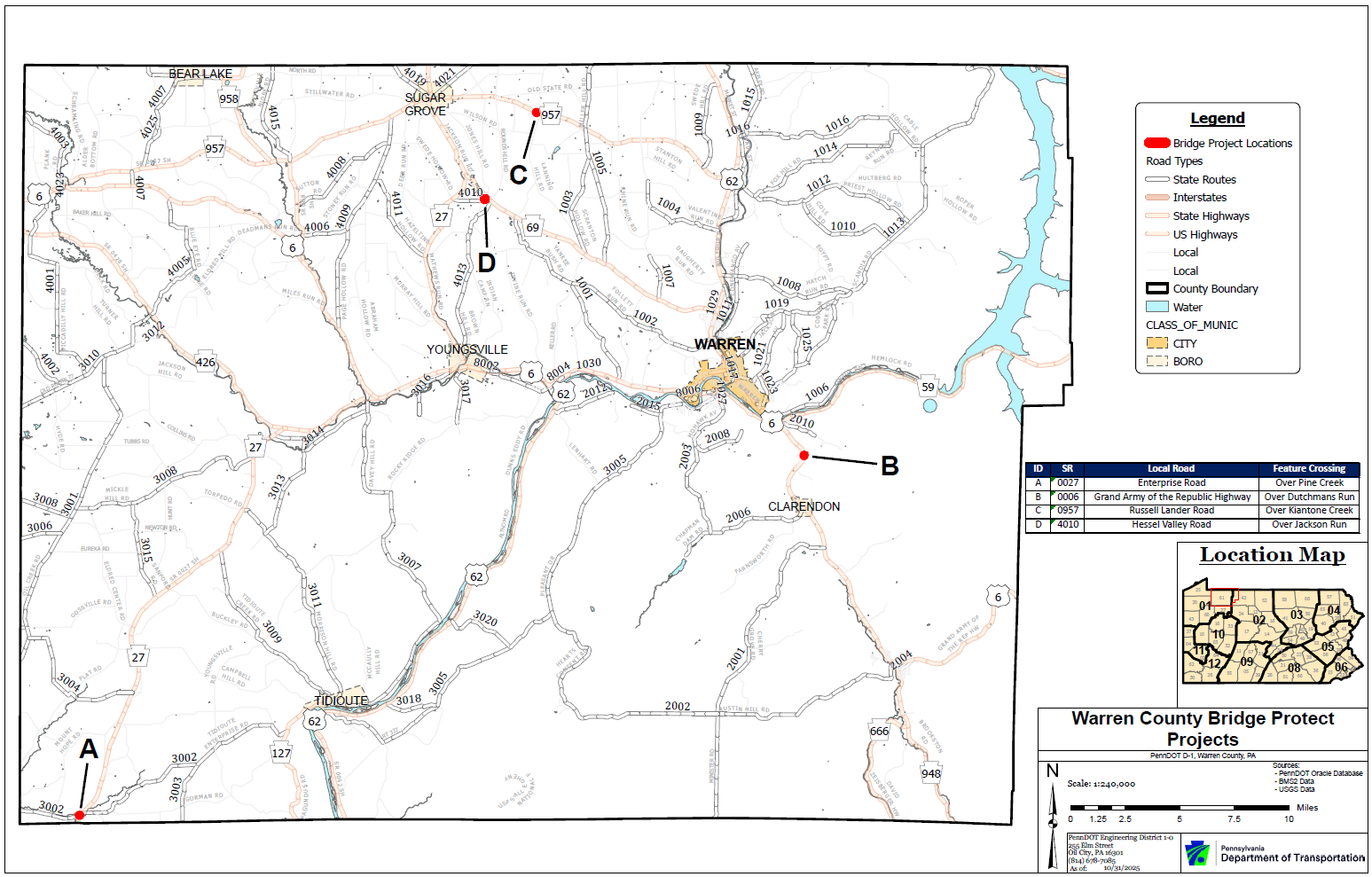 This project includes work on 28 structures in Crawford, Erie, Forest, Mercer, Venango, and Warren counties.