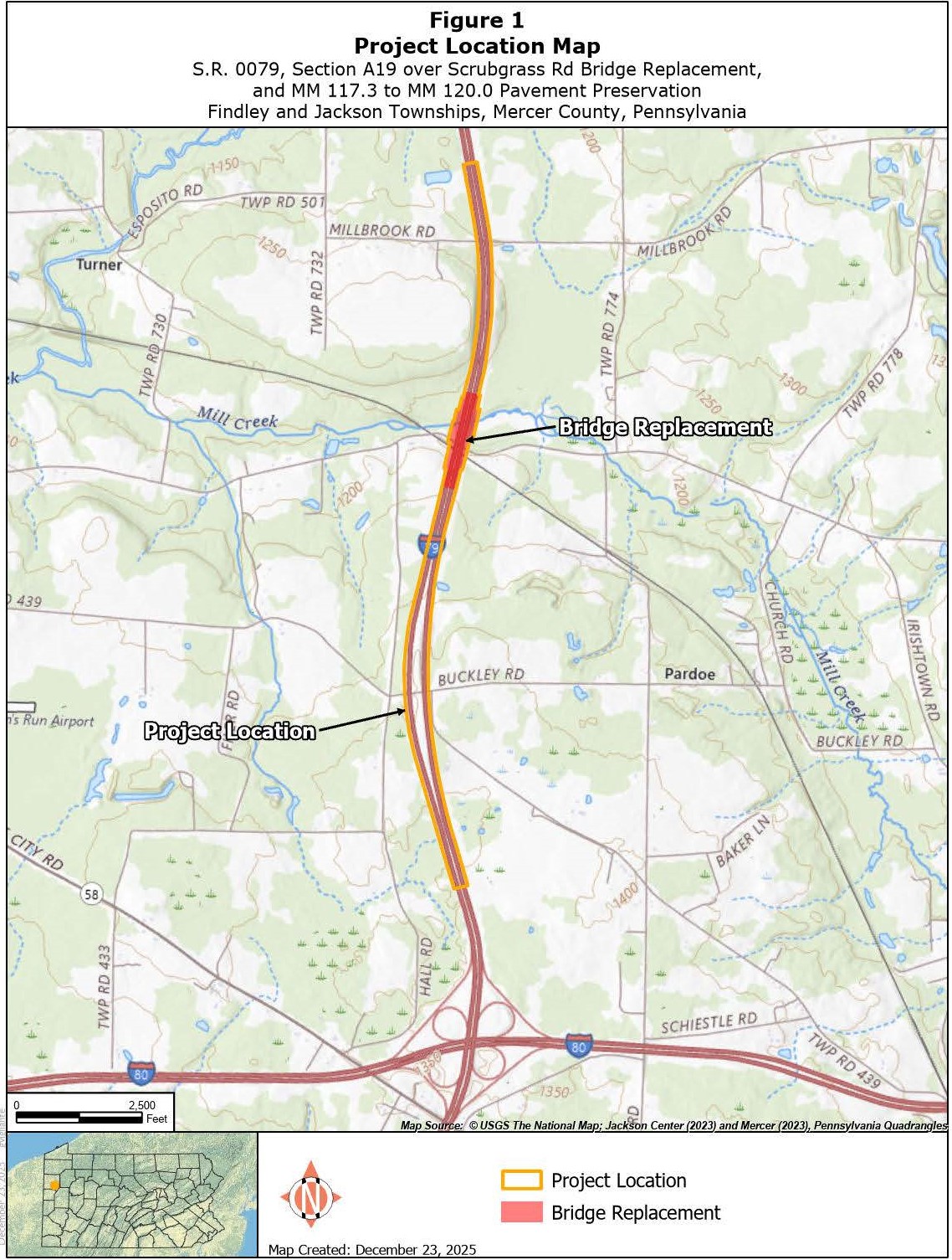 This is a proposed project to resurface nearly three miles of Interstate 79 and replace the twin bridges in Findley and Jackson townships, Mercer County.