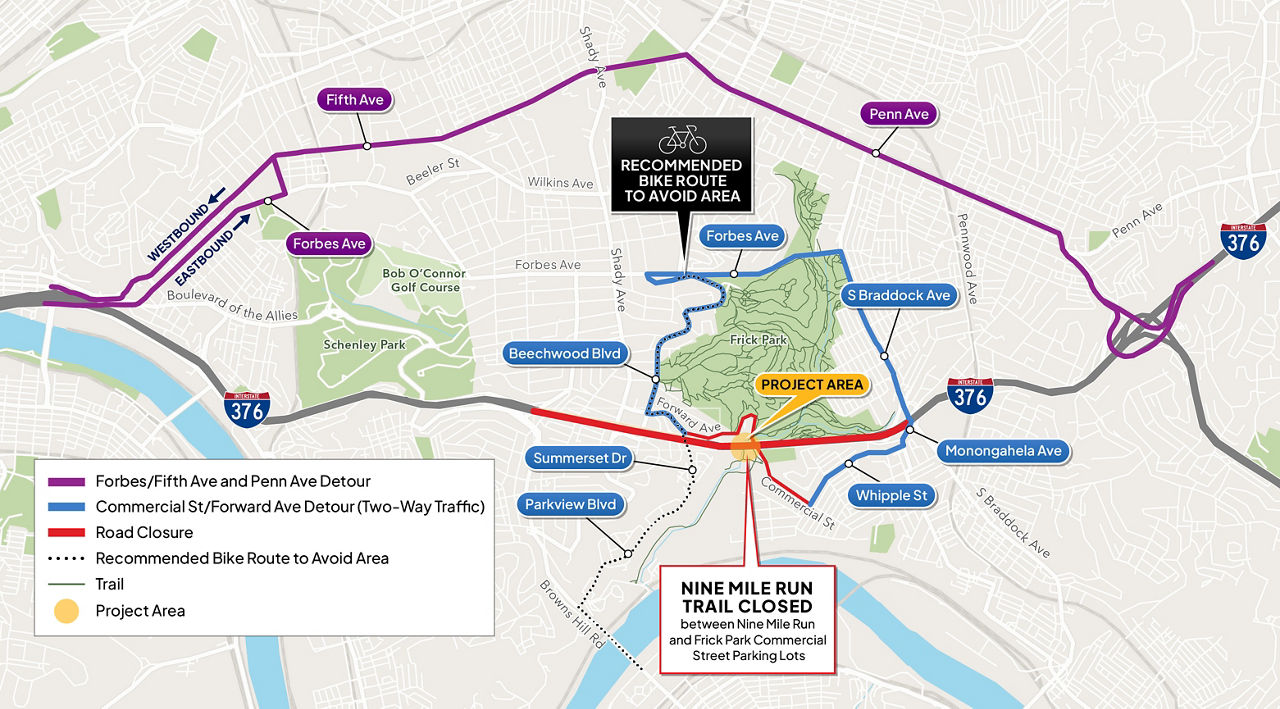 PennDOT is working closely with the City’s Department of Mobility and Infrastructure (DOMI) and regional partners to align detour plans and minimize disruptions. Regional partners include Westmoreland County Transit, Fullington Trailways, Greyhound, and para-transit agencies.