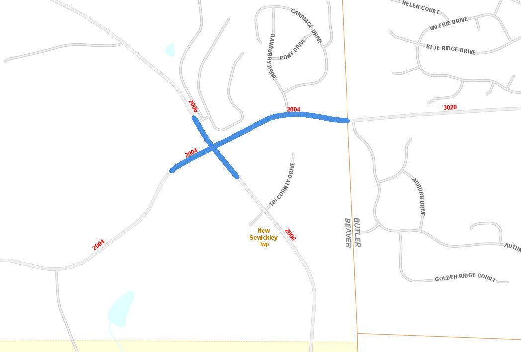The project, located in New Sewickley Township, Beaver County, will add exclusive left turn lanes on Route 2004, Freedom Crider Road at the intersection with Route 2006, Lovi Road. This intersection currently experiences a high number of left-turning vehicles on the westbound approach causing congestion due to a lack of left turn lanes on Freedom Crider Road. The addition of left turn lanes on Freedom Crider Road will result in the road needing to be widened, traffic signals to be relocated, drainage to be updated, minor right-of-way acquisitions, and utility relocations. Portions of Lovi Road will be repaved to tie into the new intersection layout. Construction is anticipated to start in the spring of 2027 and finish during the 2028 construction season.