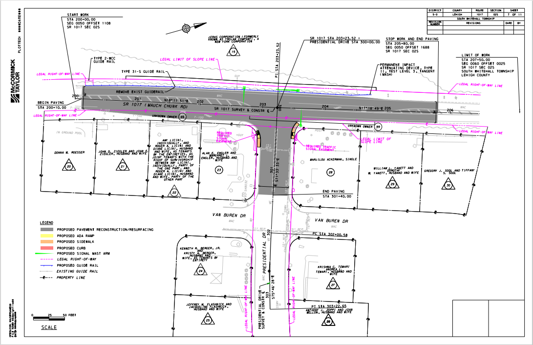 The project involves the installation of new traffic signals and pedestrian facilities at the intersection at Mauch Chuck Road and Presidential Drive.