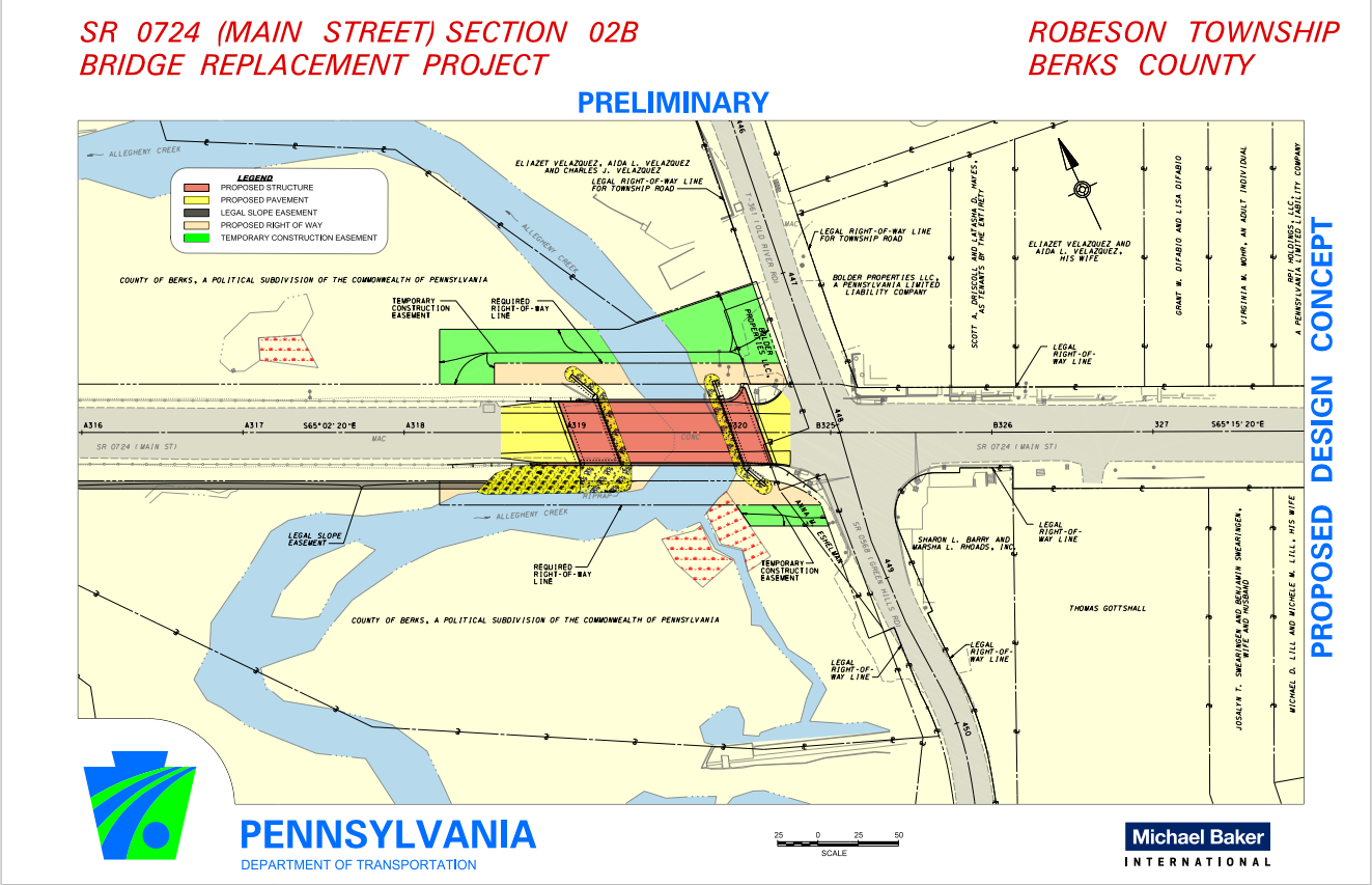 Work began Monday, April 20th, to replace the Route 724 Bridge over Allegheny Creek in Robeson Township, Berks County.