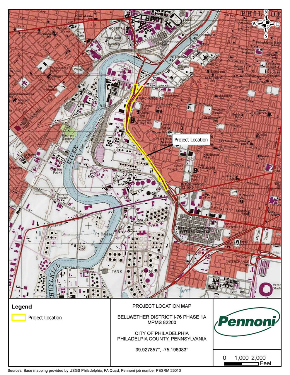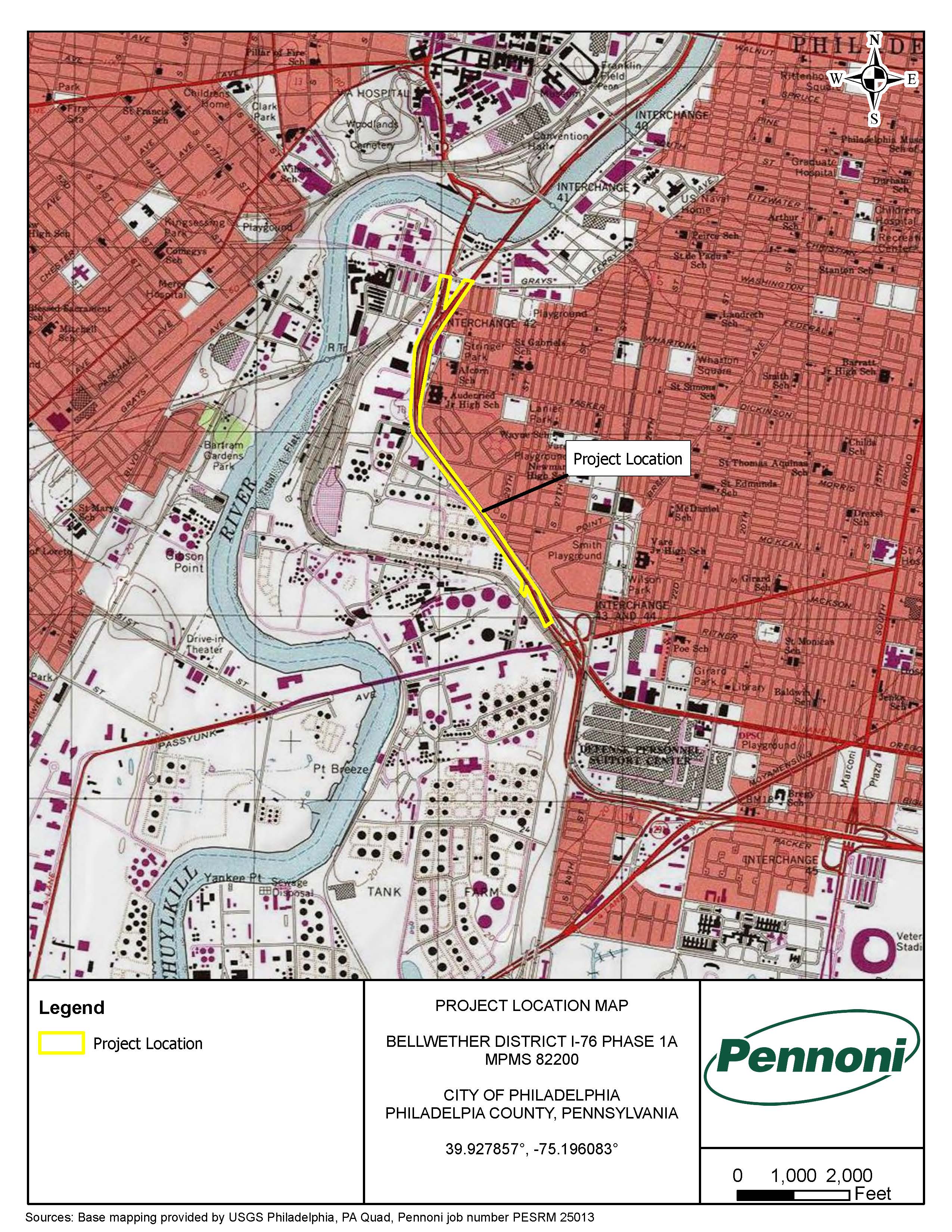 This project is one of three proposed projects supporting future development of the Bellwether District, which is a private development. MPMS 82200 (PennDOT Bellwether Phase 1A) is the roadway project involving interchange improvements between the 34th Street On-Ramp and the 28th Street Off-Ramp along Eastbound I-76 in the City of Philadelphia, Philadelphia County.