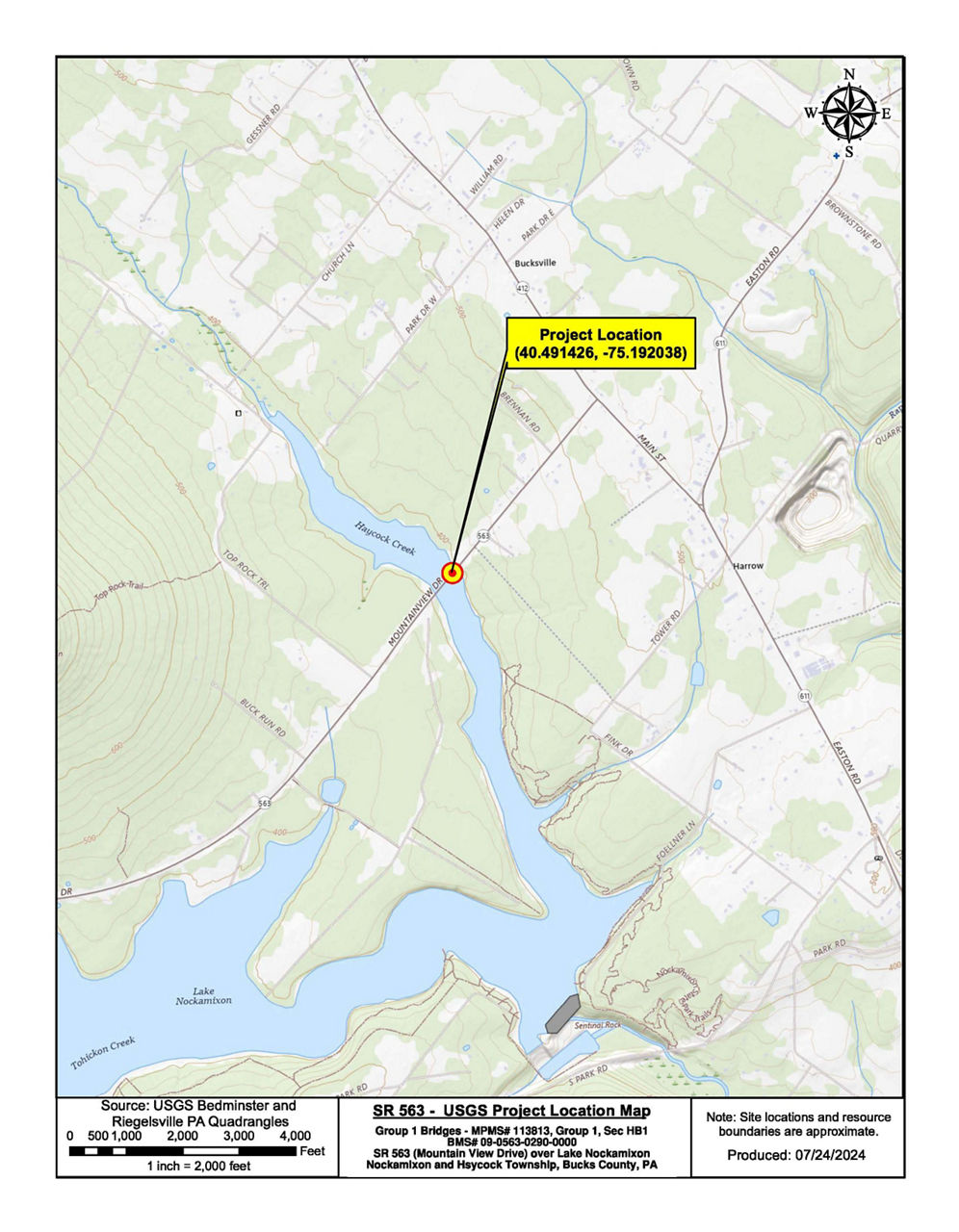Due to the nature of the project, the bridge will need to be closed and detoured. The anticipated detour is 19 miles, and the detour route utilizes Routes 611, 113, and 313. No temporary construction easements will be required.