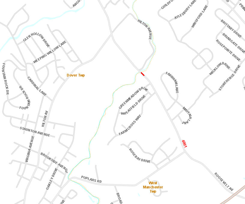 The proposed project is a bridge replacement on Route 4001 Section 019 (Bull Road) over Little Conewago Creek on the boundary of Conewago, Dover, Manchester and West Manchester townships in York County. The purpose of this project is to provide a continued safe and efficient crossing on Route 4001 over Little Conewago Creek.
