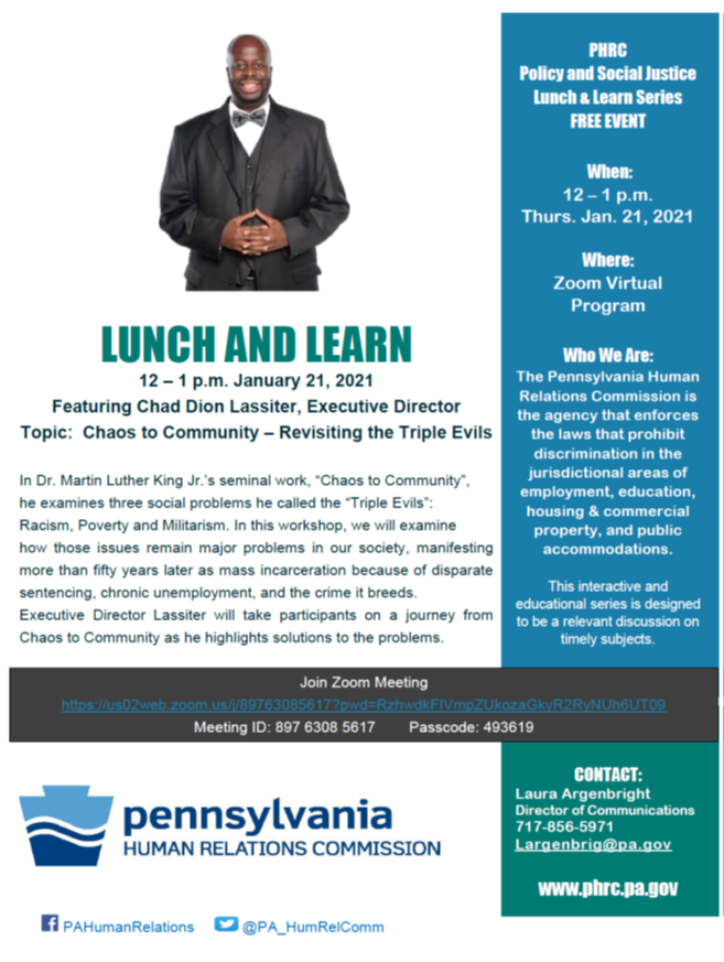 - "Chaos to Community-Revisiting the Triple Evils [Image]", featuring PHRC Executive Director Chad Dion Lassiter (January 21, 2021)