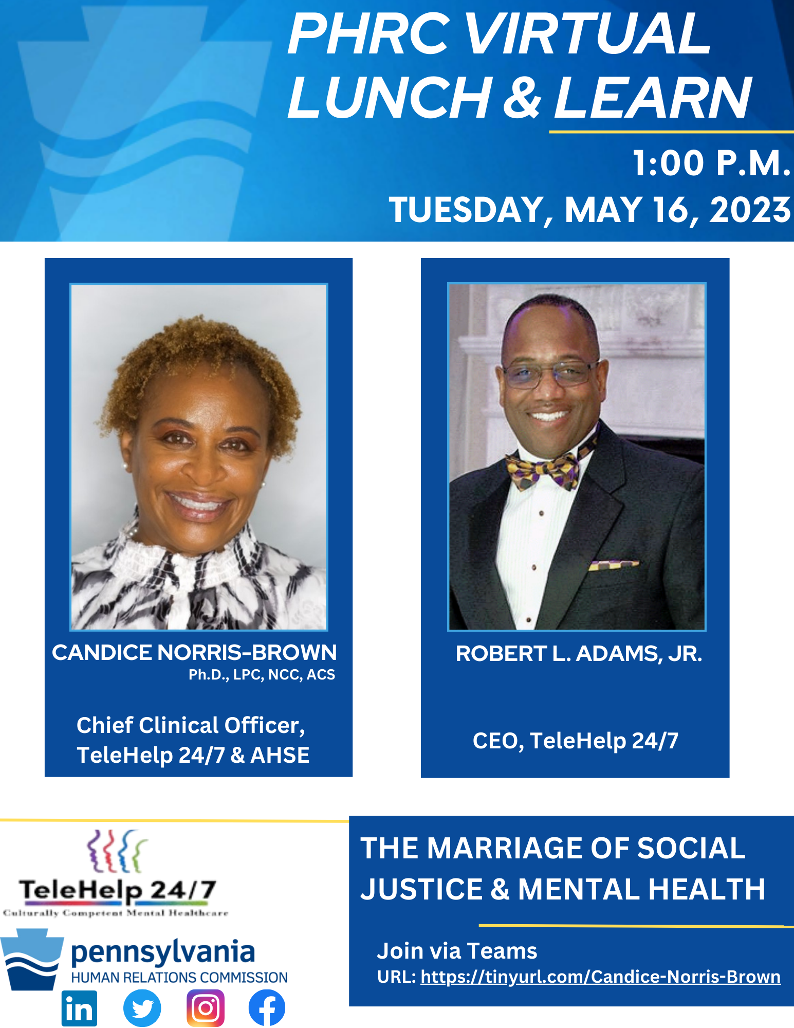 - "The Marriage of Social Justice & Mental Health, [Image]" featuring Candice Norris-Brown & Robert L. Adams, Jr. (May 16, 2023)