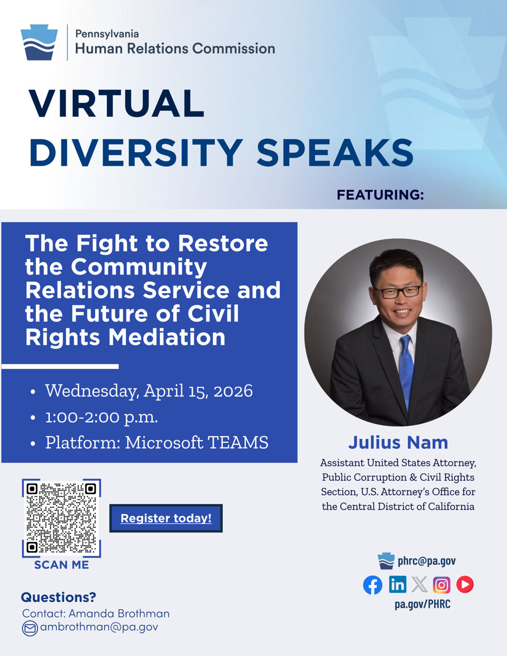Join us for a PHRC Virtual Diversity Speaks - The Fight to Restore the Community Relations Service and the Future of Civil Rights Mediation.