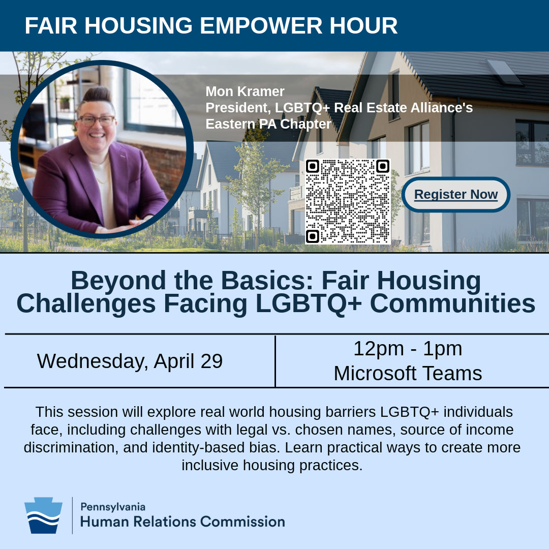 Join the Pennsylvania Human Relations Commission and the Fair Housing Council of the Capital Region to learn about fair housing protections for individuals with disabilities. We'll discuss fair housing laws, protected classes, how to avoid discriminatory actions, and how to navigate the reasonable accommodations process. Reasonable accommodations requests can be a challenging issue for landlords to handle.